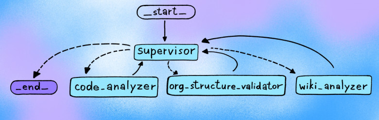 Я использовал 3 агента: Code Analyzer, Wiki Analyzer и Org Structure Validator.